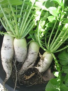 プランターの大根を収穫しました。大根は小さいですが、煮物などにして頂いてます。