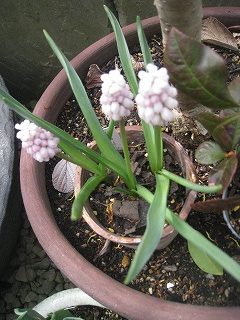 そして、ムスカリです。ちょっとわかりにくいですが、ピンクのムスカリです!