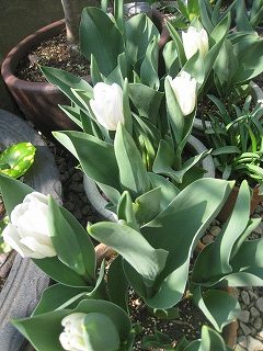 チューリップの球根も大きくなり白い花がさきました。今はお店の方に移動して飾っておりますよ。